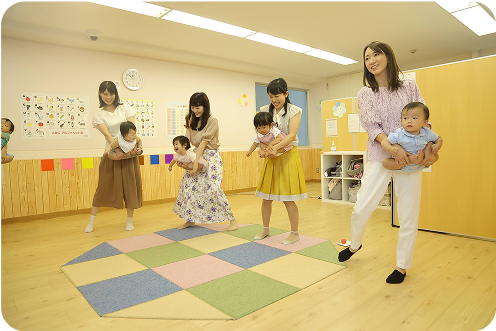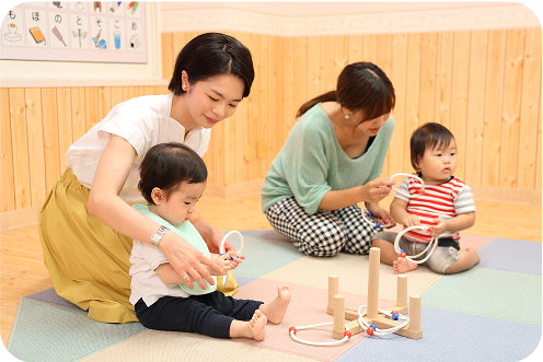 月齢ごとに重要な育児知識をお伝えする「育児寺子屋」や「育児相談」など、お子さまだけでなく、ママ・パパのための教室でもあるのが特徴です。